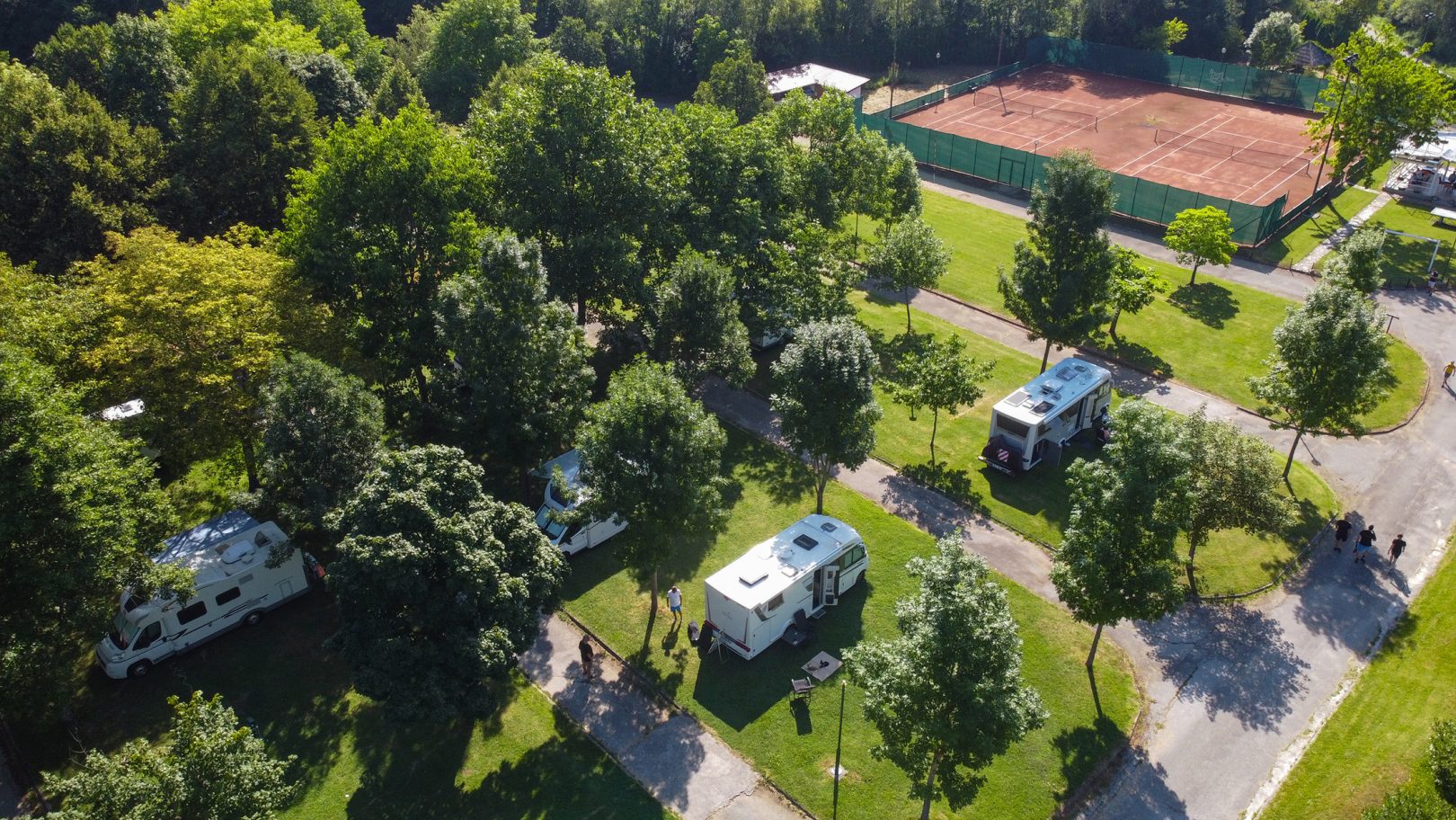 The campground covers an area of 33,000 square meters and encompasses a restaurant and a coffee bar. The campground offers 23 modern stall showers, and there are also washing machines and a tumble dryers available for the campers. The whole area is covered by a high speed wifi connection.